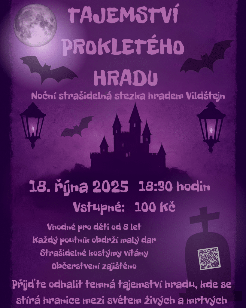 Strašidelná stezka noční vede Vás do sklepení, temnic i hvozdů okolo hradu, kde na odvážlivce čekají přízraky, čarodějky a bytosti neznámé, své tajemství bedlivě střežící. Odvážíte-li se vstoupiti, snad poznáte, že mezi světem živých a mrtvých hranice tenká jest a každý krok nová hrůza odhaliti může…