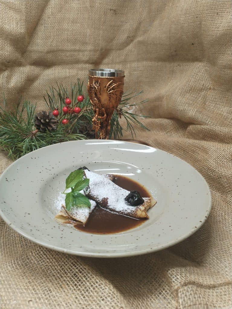 Vstupte do hradní síně, kde se světlo svící odráží od kamenných zdí a kde se z kuchyně line vůně pečeného masa, čerstvých bylin a medoviny.