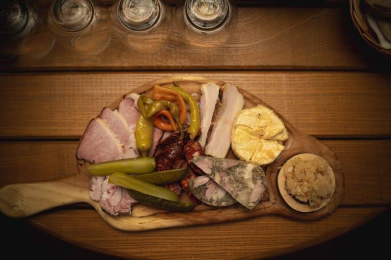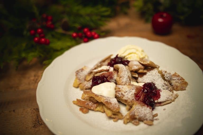 doplněná o červené zelí na víně s brusinkami a bílé zelí s jablky a kmínem. Karlovarský knedlík