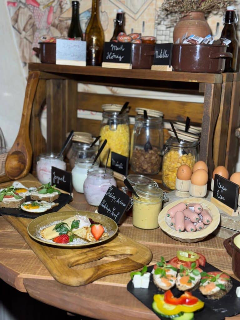 Nejen pro ubytované hosty, ale pro všechny, kdo si chtějí zpříjemnit ráno v jedinečné atmosféře hradní hodovny, nově nabízíme snídaně formou bohatého bufetu.