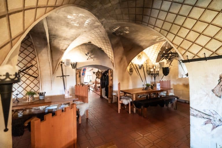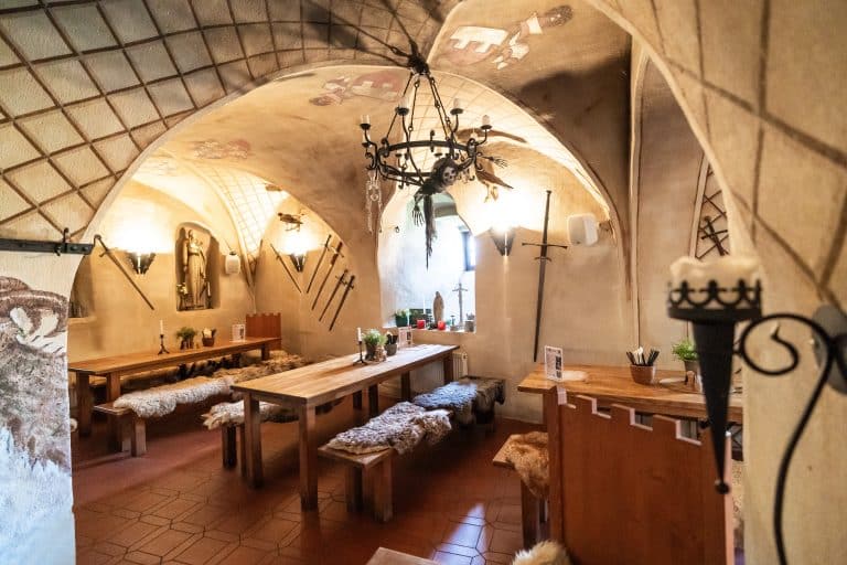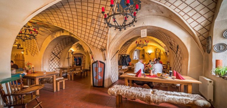 Zažijte návrat do dob rytířů, hradních paní a středověkých oslav. Naše hodovna s mohutnými dřevěnými stoly, kamennými zdmi a dobovými dekoracemi vás přenese zpět v čase. Pohostinnost a jedinečné prostředí doplňují pokrmy, které nejen skvěle chutnají, ale také okouzlí svou úpravou.